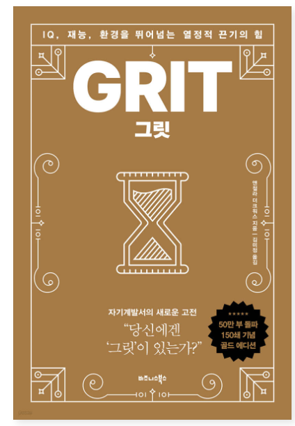 그릿:열정과 끈기의 힘은 국내 50만 부 돌파, 전 세계 600만 부 돌파한 베스트셀러입니다. 2016년 출간 즉시 아마존 베스트셀러 1위에 오르며 교육, 산업, 방송할 것 없이 전세적으로 신드롬을 일으킨 책으로 켈리 최, 자청 등 셀럽, 리더, 언론인들이 적극 추천한 새로운 자기 계발서의 고전이라고 할 수 있습니다.
